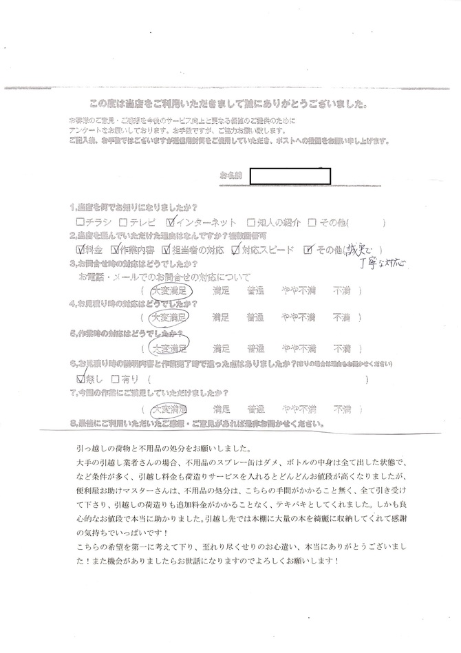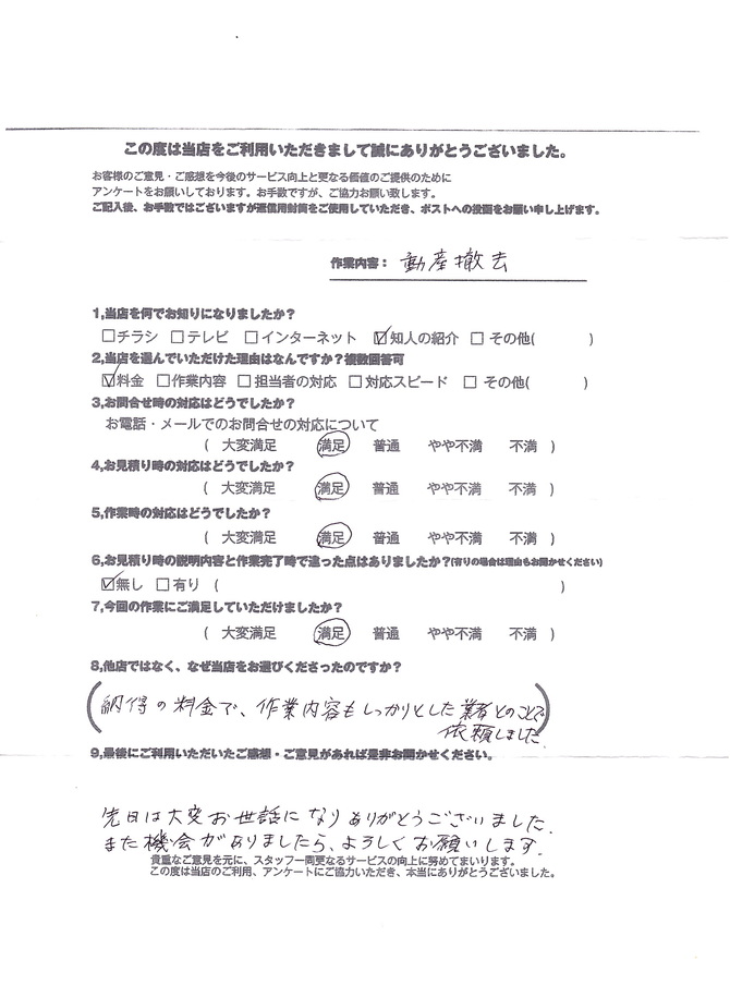 対応が良かったので、便利屋マスターさんに作業してもらいました。丁寧な作業で本当にきれいになりました。満足しています。