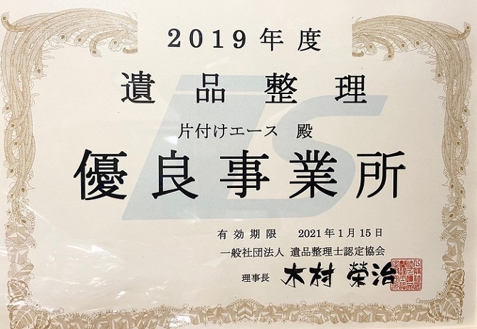 2, 優良事業所に認定当社では全国30社に1社のみ選ばれる〈優良事業所〉に選ばれております。また、遺品整理協会から地区統括会員として選定されている便利屋業者となっております。